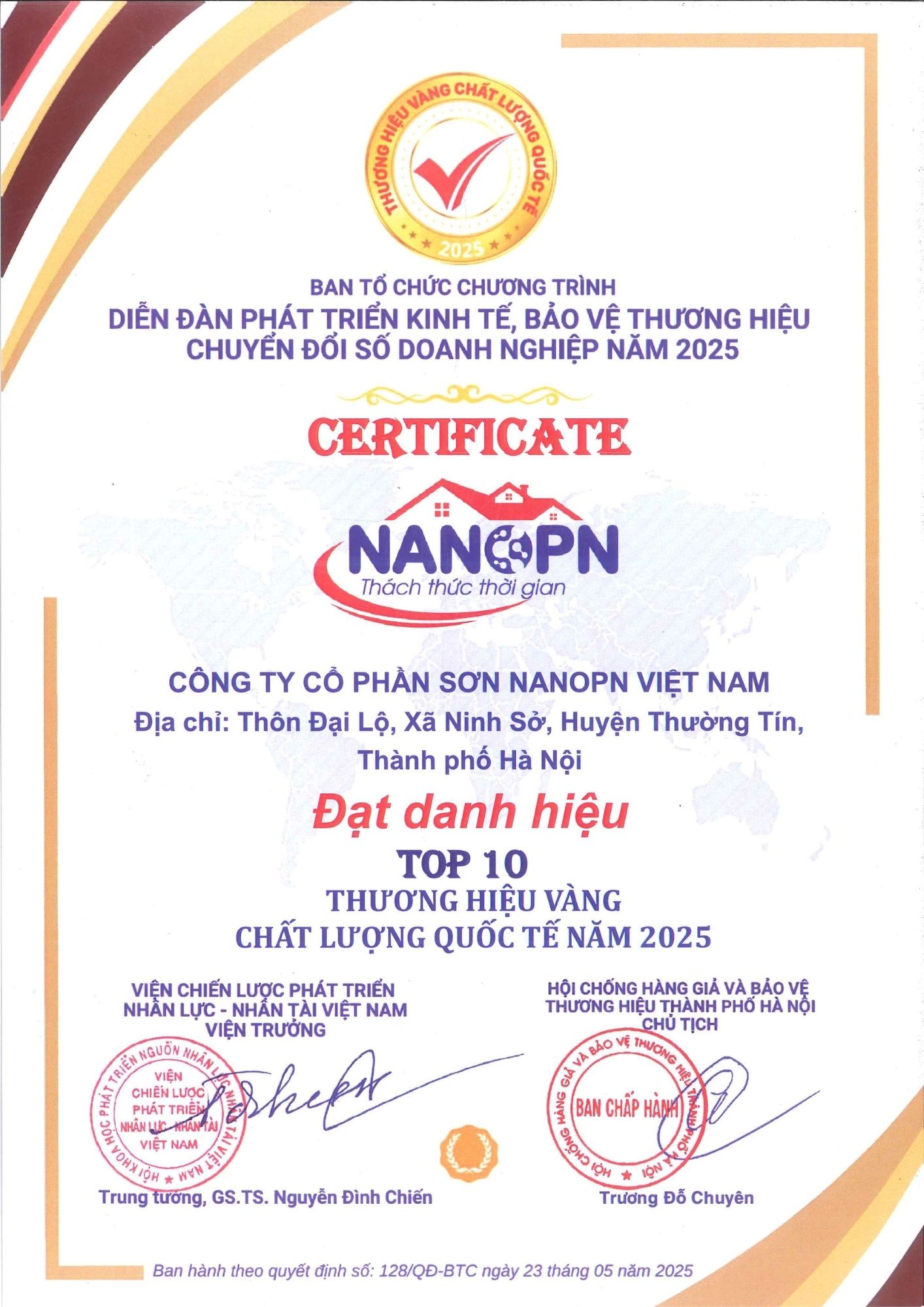 TỰ HÀO LÀ THƯƠNG HIỆU ĐẠT TOP 10 DOANH NGHIỆP PHÁT TRIỂN BỀN VỮNG NĂM 2025.